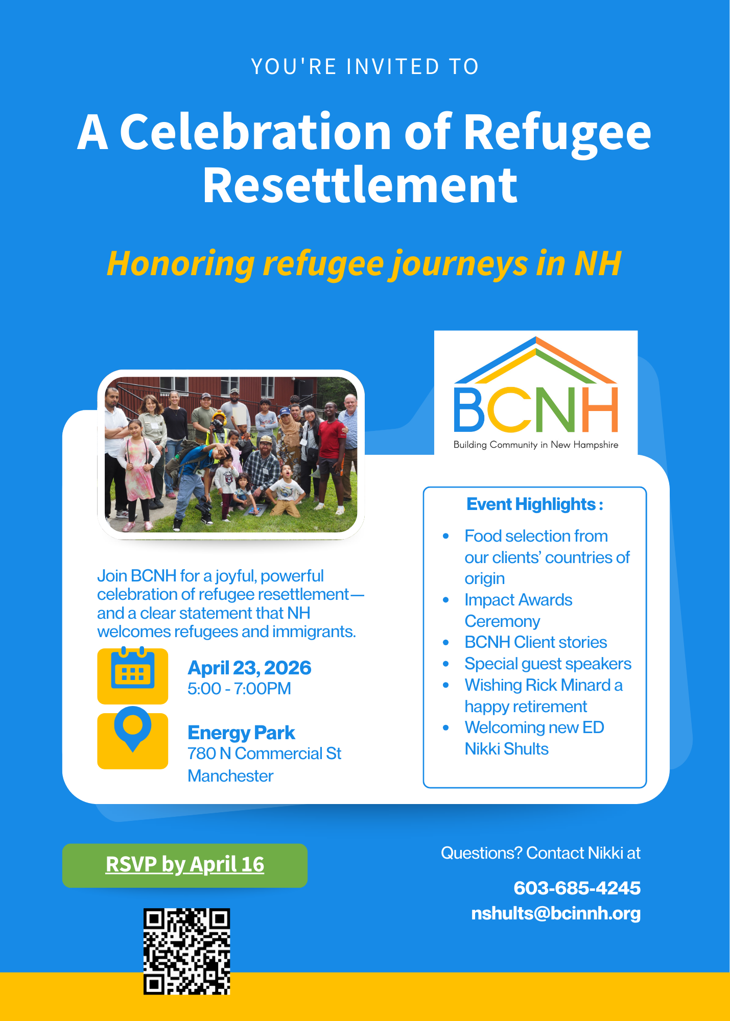 Join BCNH for a joyful, powerful celebration of refugee resettlement—and a clear statement that New Hampshire welcomes refugees and immigrants.